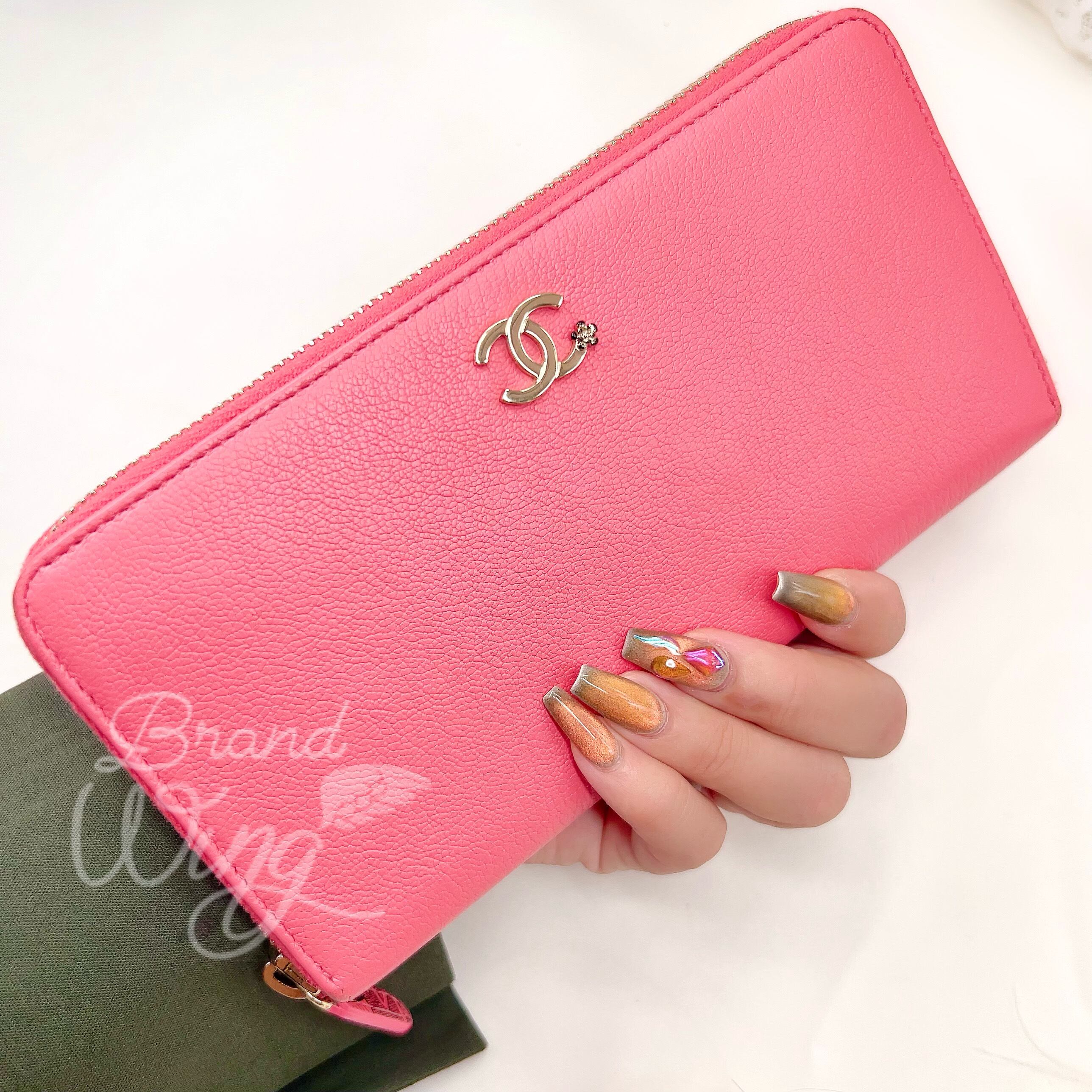シャネル 財布 ピンク ラッキーフラワー 長財布 ラウンドファスナー 極美品