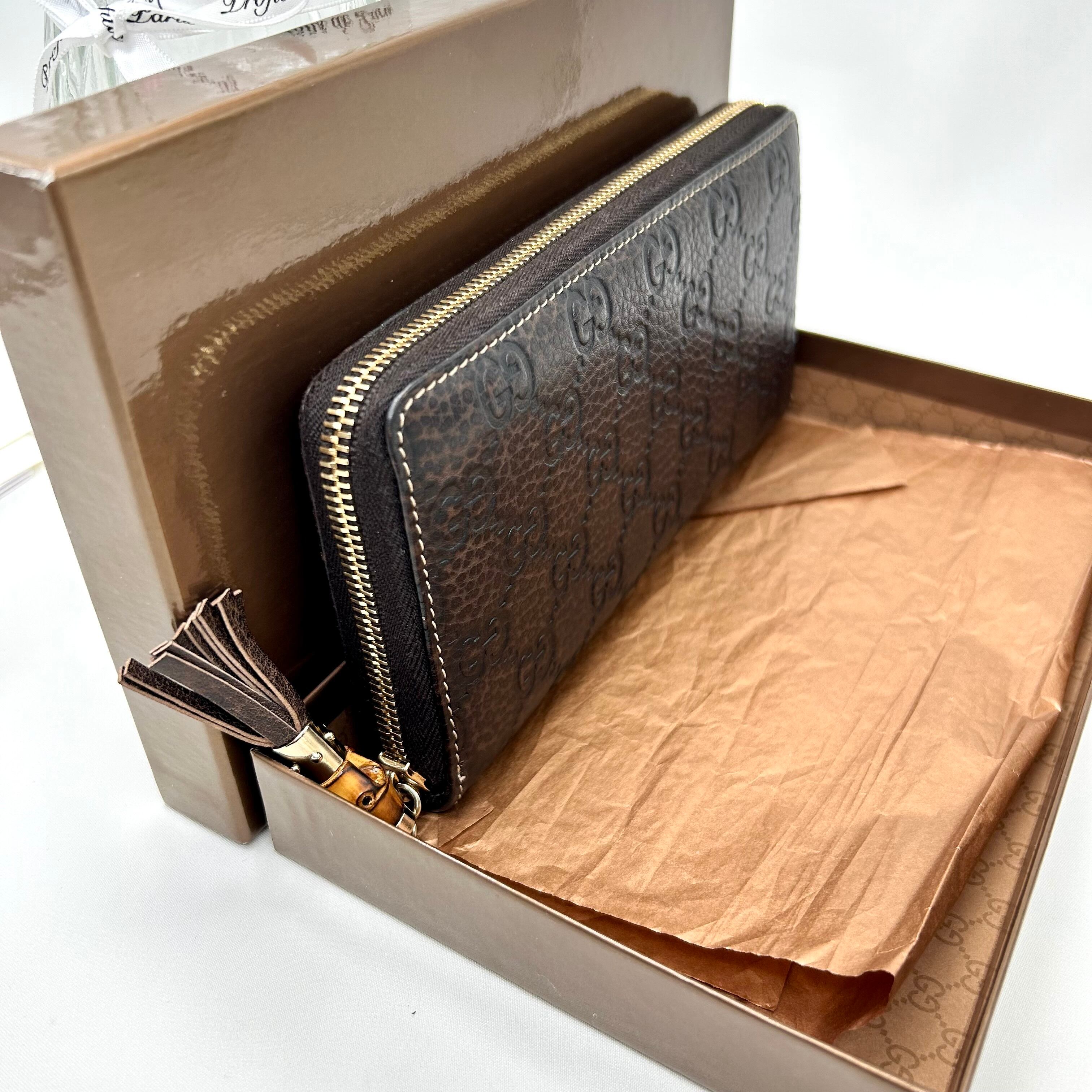 グッチ ヴィンテージ加工シボレザー バンブー付き グッチシマロングウォレット 【新品未使用✱付属品完備⠀】